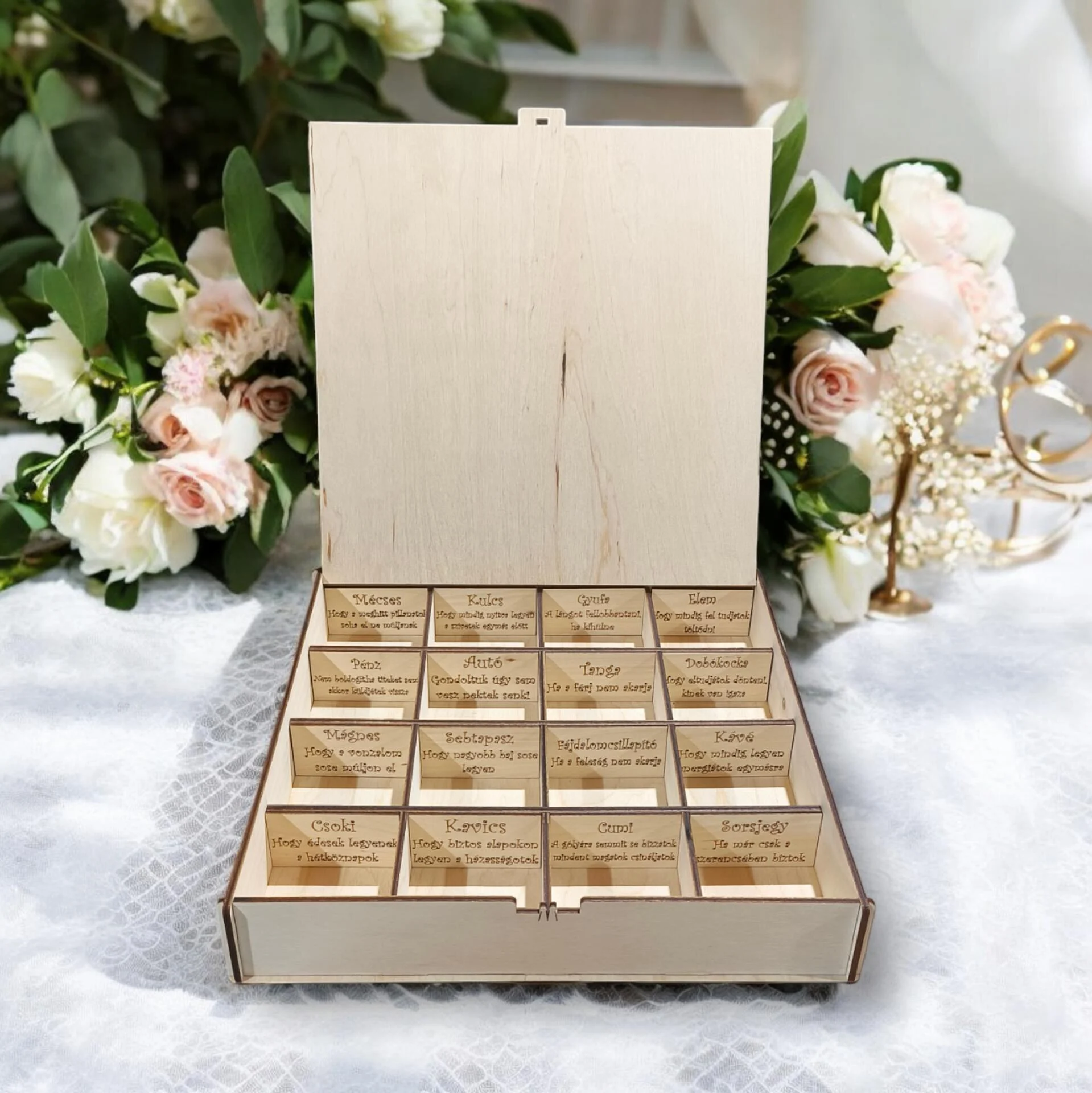Ünnepeld a házasság örömeit és kihívásait ezzel az egyedi, gravírozott díszdobozzal,
