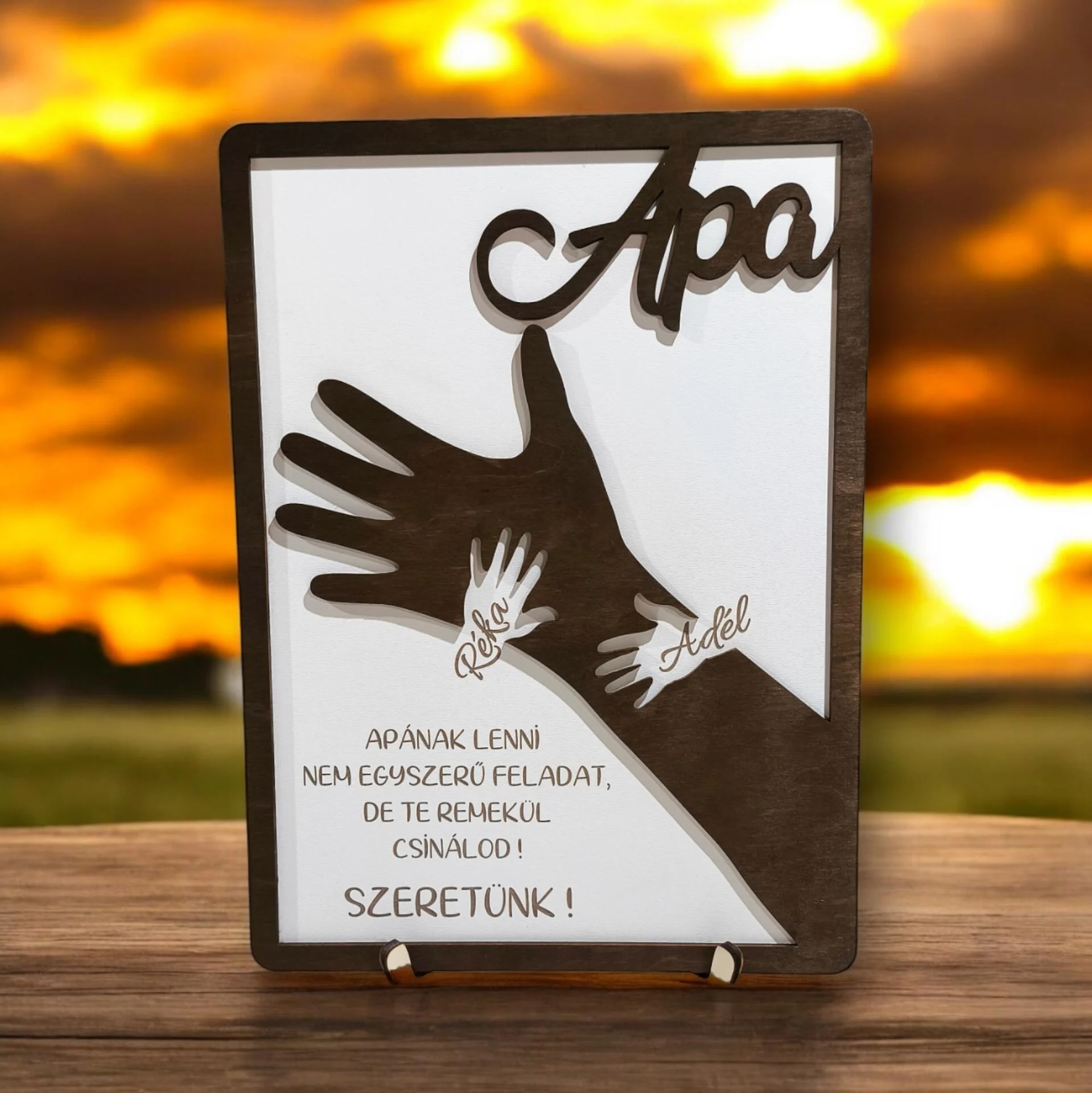 A Kéz és a keret egy külön rétegből kerül kivágásra, így még egyedibb 3D hatást kölcsönöz a terméknek.