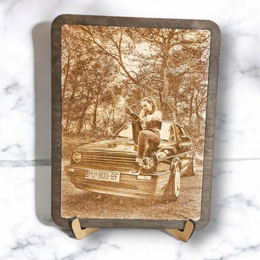 – Egyedi Design: Küldd el nekünk kedvenc fotódat, és mi professzionálisan gravírozzuk azt 4 mm vastagságú nyír rétegelt lemezre.