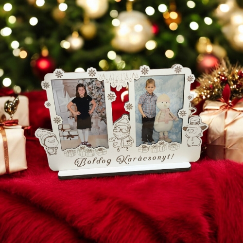 Karácsonyi Képtartó Egyedi Gravírral – Egy vagy Két Fotó Számára