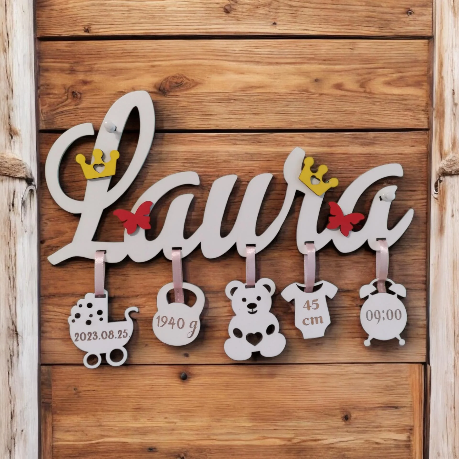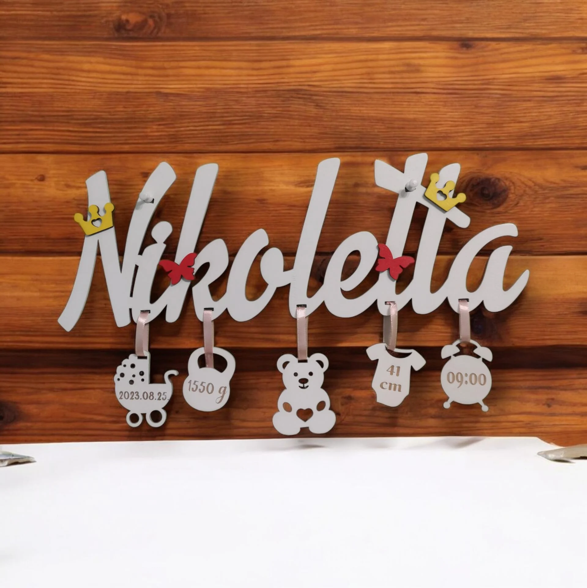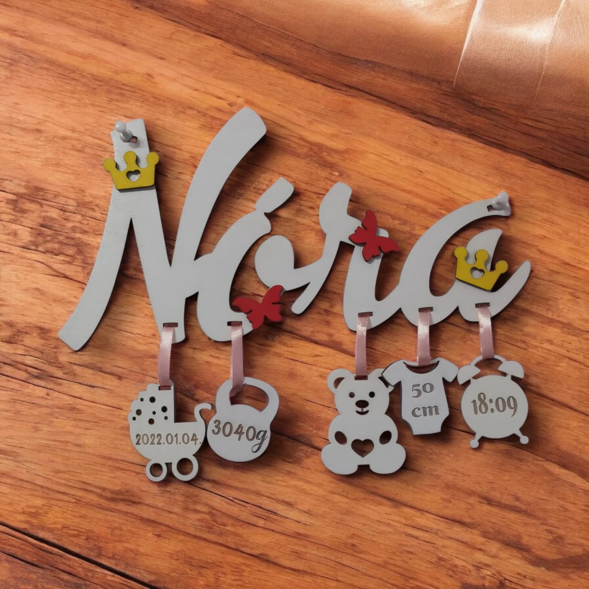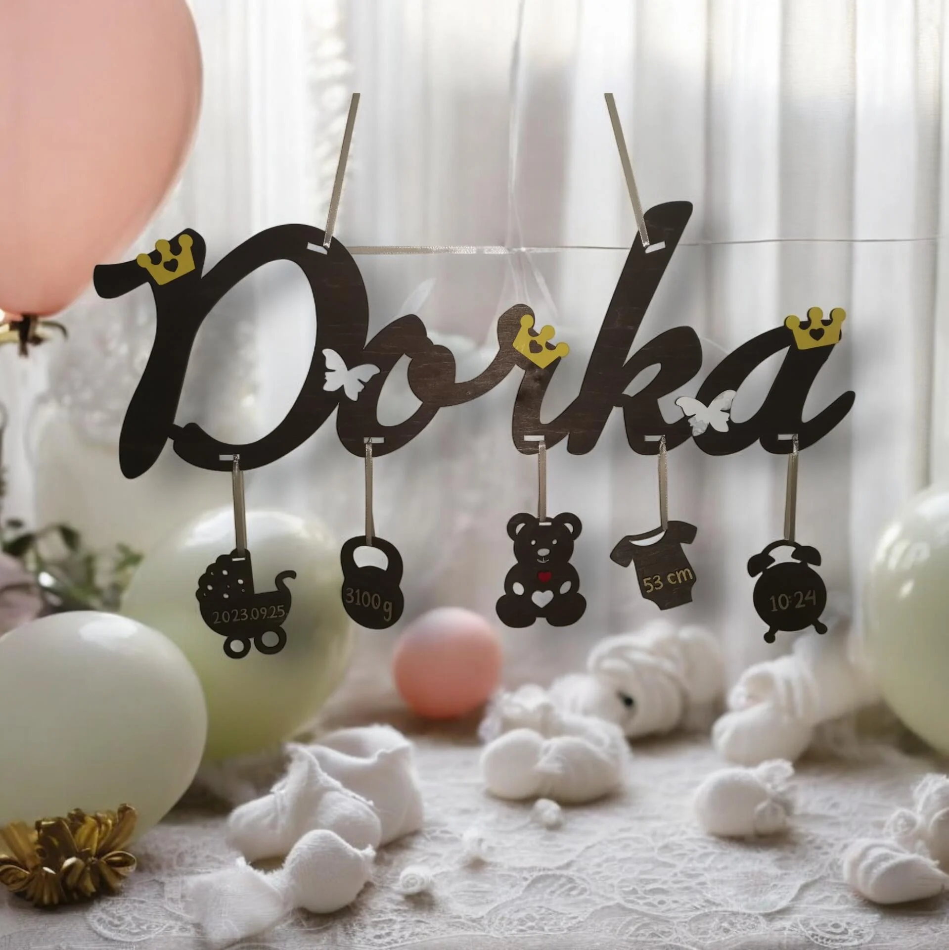 Egyedi Fából Készült Névtábla – Személyre szabott gyermek születési adatokkal